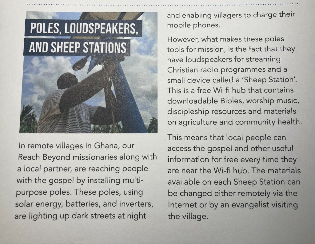 This article from one of the organisation’s recent magazines shows that loudspeakers can still be used in places where not everyone has their own radio.