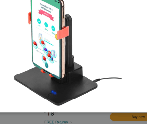 It’s a cradle for your mobile phone. But instead of just sitting there on your kitchen table or beside your bed, it swings your phone from side to side.